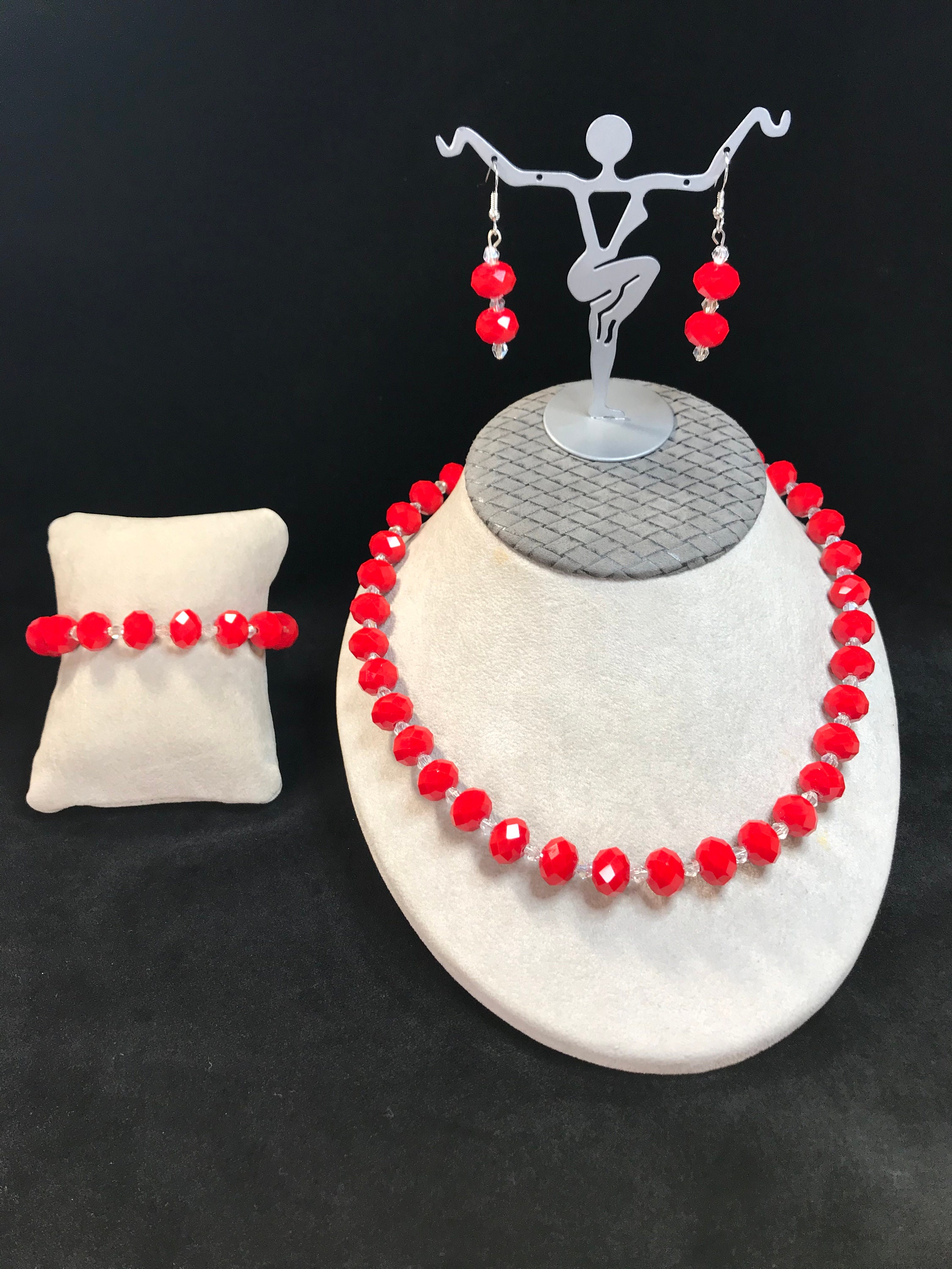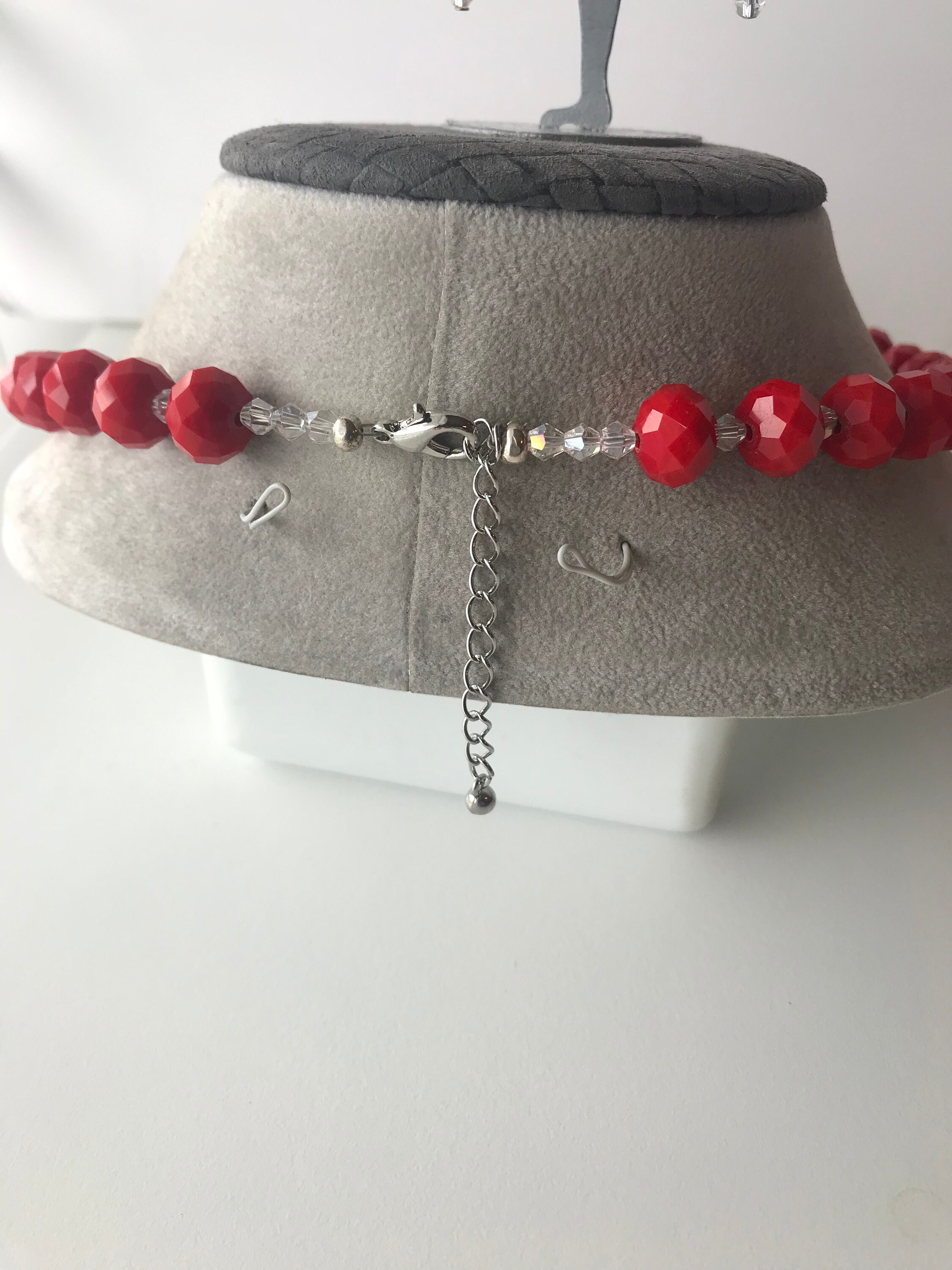 anniversaries, valentine day, and more. they're made with red crystals beads are 12mm and clear little bicone beads are about 2mm to 4mm, silver plated wire nickel free, the necklace is 19 inches with adjustable 2 inch chain.
