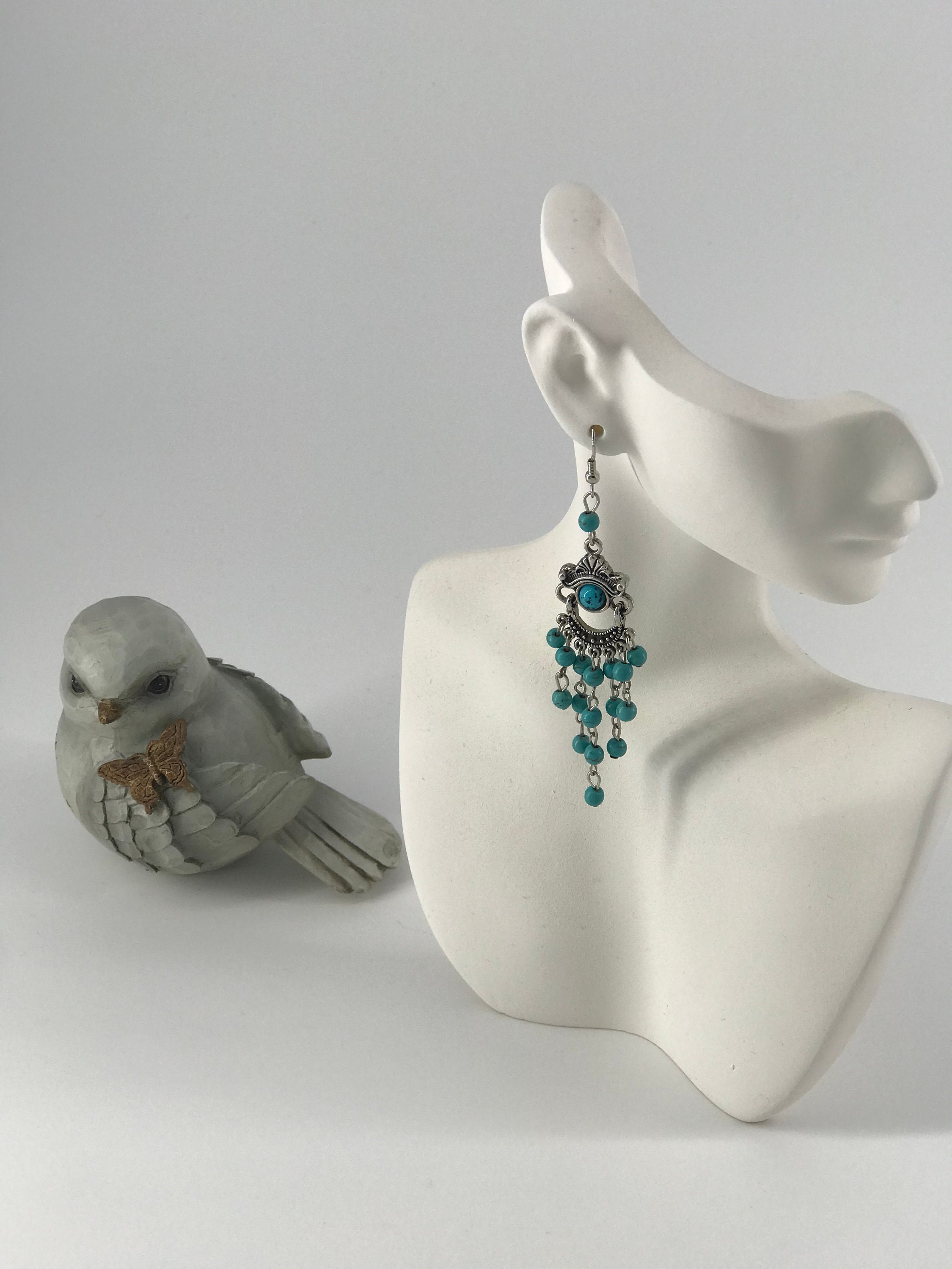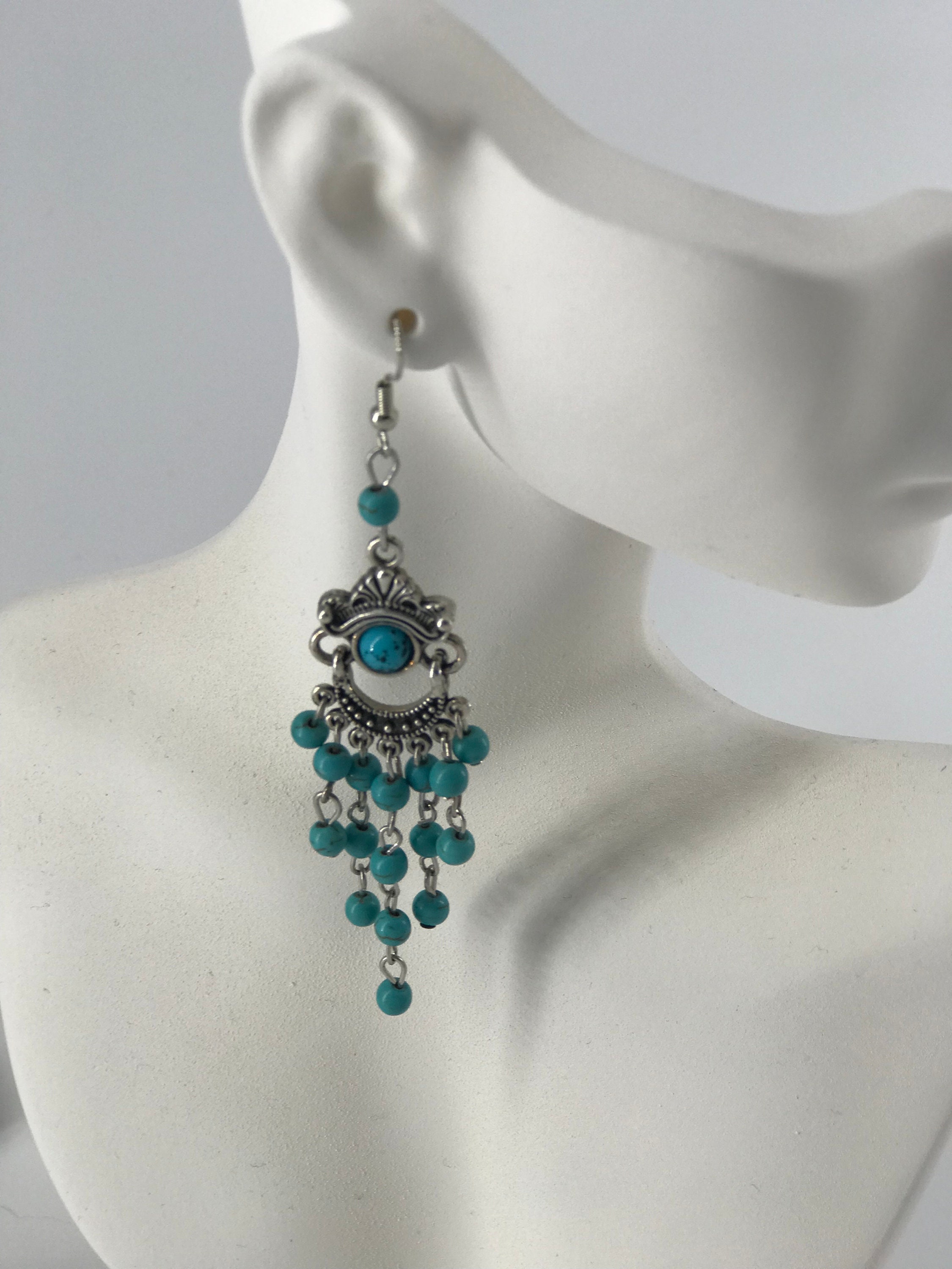 A beautiful pair of bohemian earrings, casual and elegant, you can use them everywhere, They come in a little pretty box, They are the perfect gift, The size of the beads are 6mm the metal is antiqued silver plated and the length of the earrings is around 3 and half inches,