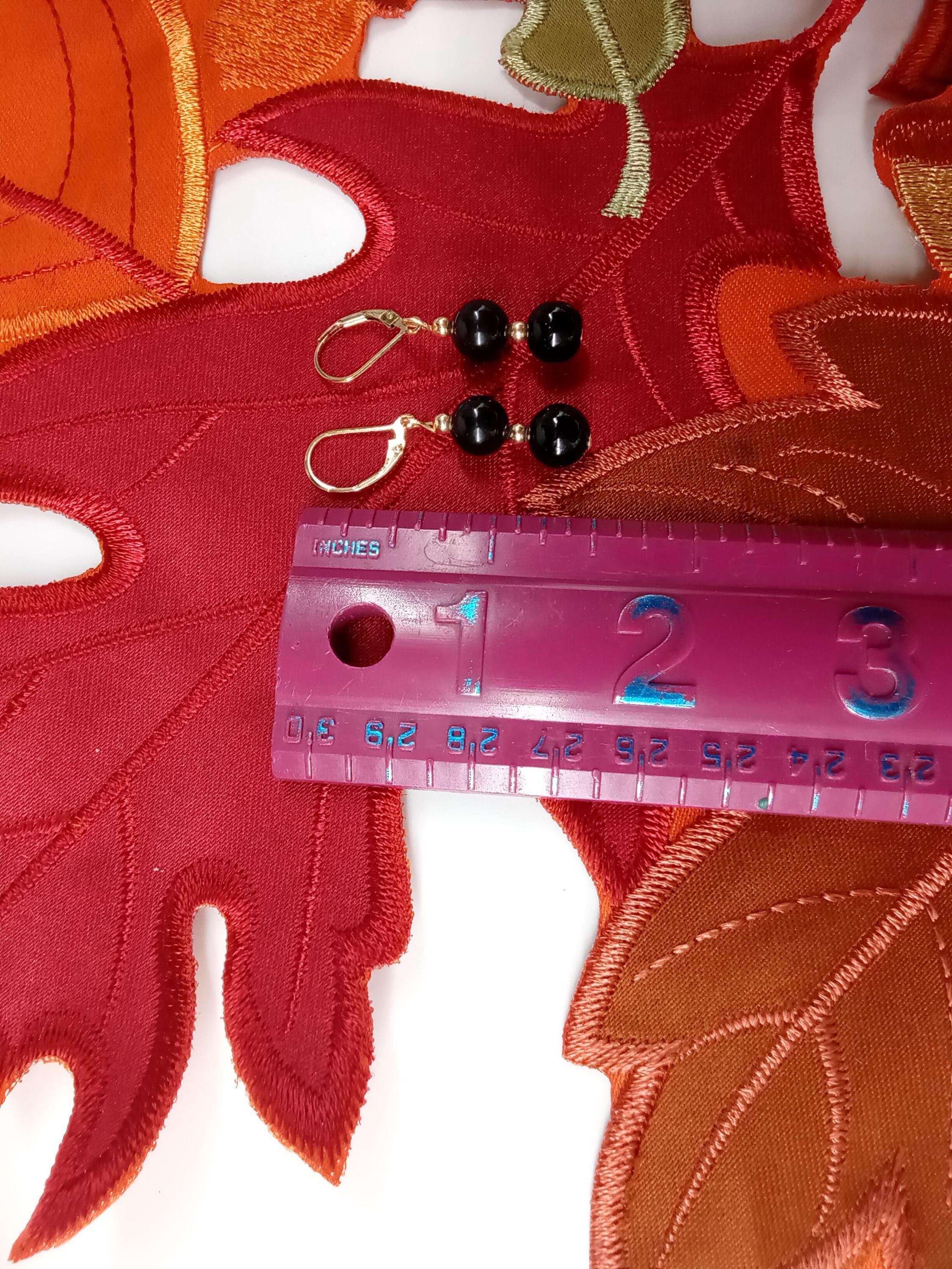 Beautiful pair of earrings, made with gold filled and black coated jade, gold filled means it have many layers of gold, the length of the earrings are 1 and half inches, let me know If you want the necklace or bracelet to match this pair of earrings, Normal response time is between 12-24 hours, Usually you will receive the order between 5 - 7 business days through USPS first-class.