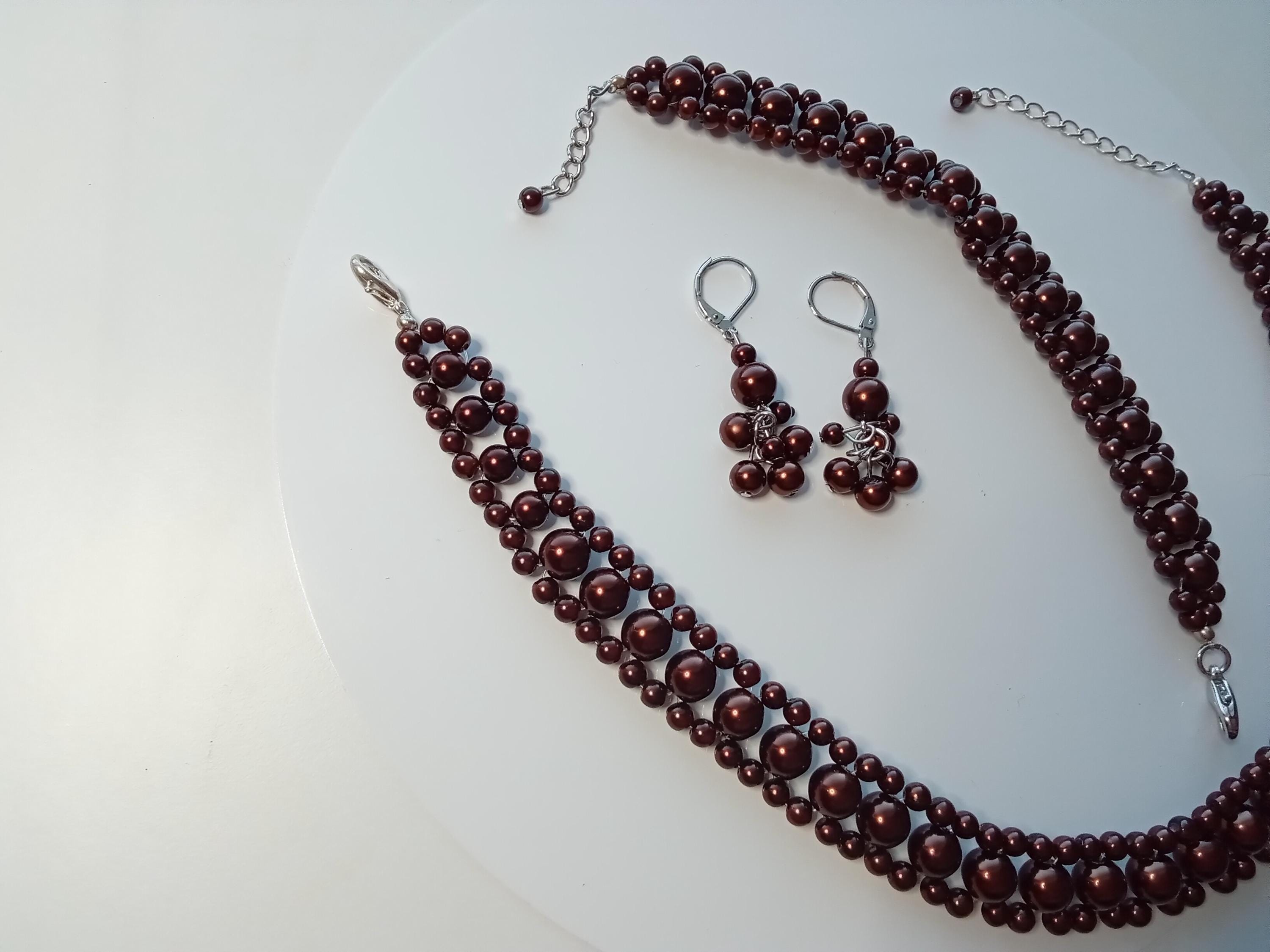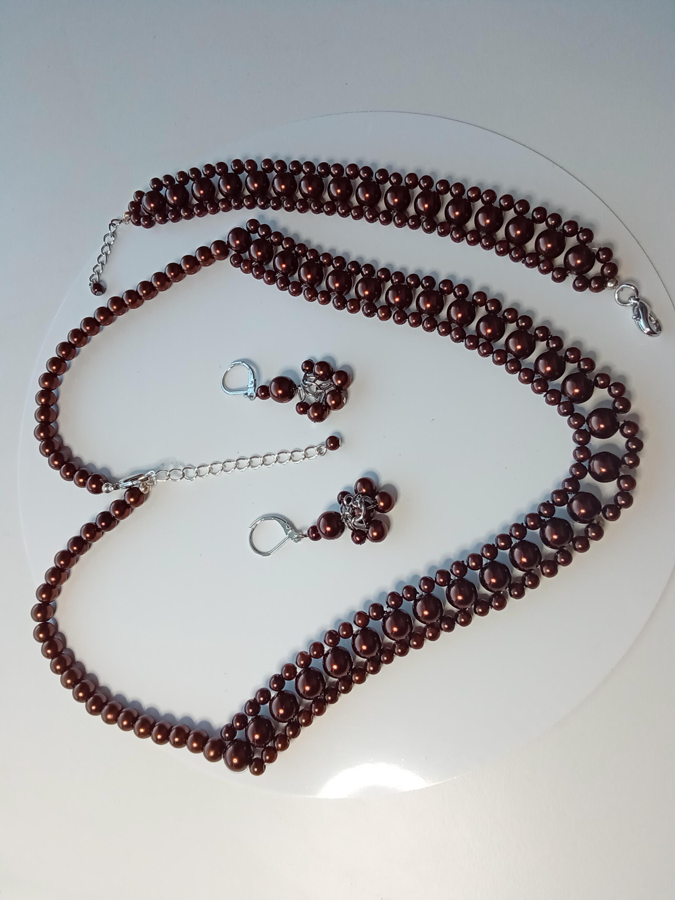 This is a 3 pieces set, brown glass pearls beads, bead size 4mm and 6mm, the choker is 13 inches with 2 adjustable silver plated chain inches, lobster claw in silver plated, the bracelet is 6 and half inches and 2 adjustable inches chain in silver plated. If you want other size or a long necklace please contact me, Normal response time is between 12-24 hours Usually you receive the order between 5-7 business days through USPS first class.